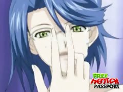 blue haired hentai bitch in glasses